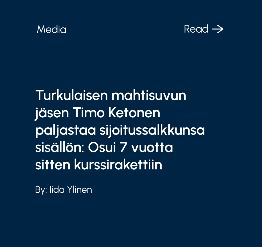 Olen aktiivinen yrittäjä ja sijoittaja. Olen toiminut yli kymmenen vuotta Aboa Advestin toimitusjohtajana ja perustajana luoden vahvan perustan vaikuttavuussijoittamiseen. Olen keskittynyt erityisesti DeepTech-aloihin ja siniseen talouteen. Tässä roolissa olen pystynyt kehittämään pitkän aikavälin sijoitusstrategioita, joissa taloudellinen tuotto on tasapainossa yhteiskunnallisten ja ympäristöhyötyjen kanssa. Nykyinen roolini TS-Yhtymän hallituksen puheenjohtajana (TS Group) - suvun sijoitus- ja mediayhtiö - kuvastaa edelleen sitoutumistani innovaation ja kasvun edistämiseen murroksessa olevilla toimialoilla, erityisesti digitaalisen transformaation avulla.